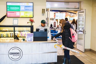 The Commons Dining Hall features a full all-you-care-to-enjoy breakfast, lunch, and dinner, with a grill, pizza oven, deli bar, salad bar, and more! In a hurry? Take your meal to-go using one of our sustainable to-go boxes.